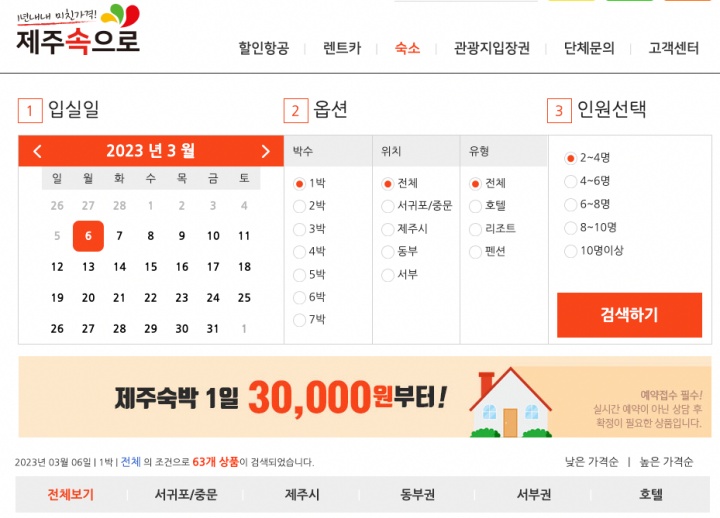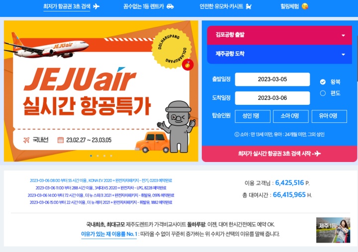 - 제주 항공권, 렌트카, 숙소, 관광지 입장권 한 번에 확인 가능